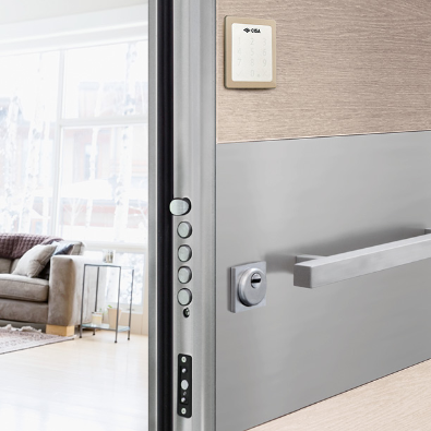 CISA MyEVO: serratura motorizzata per porte blindate con chiusura intelligente. Accostando il battente si attivano i catenacci e la porta si chiude automaticamente.